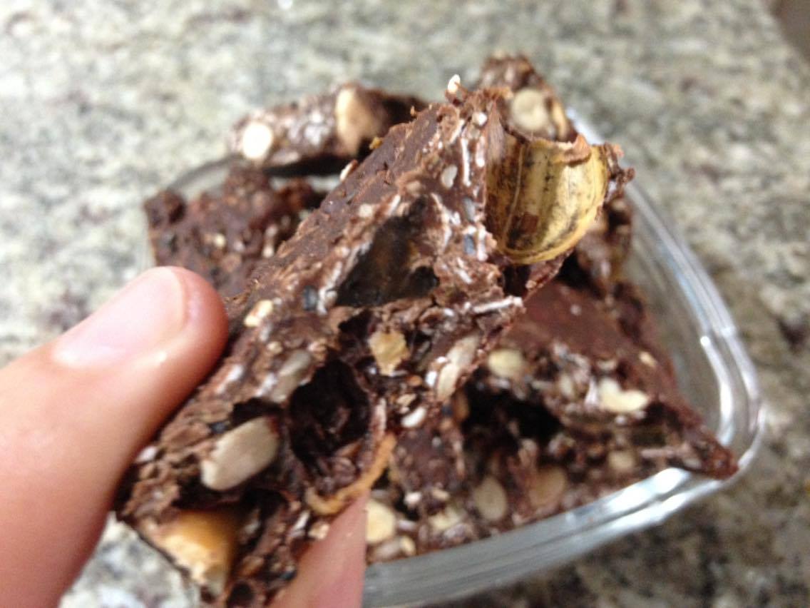 1 xíc. de chocolate meio-amargo ou amargo derretido (usei Harald)
