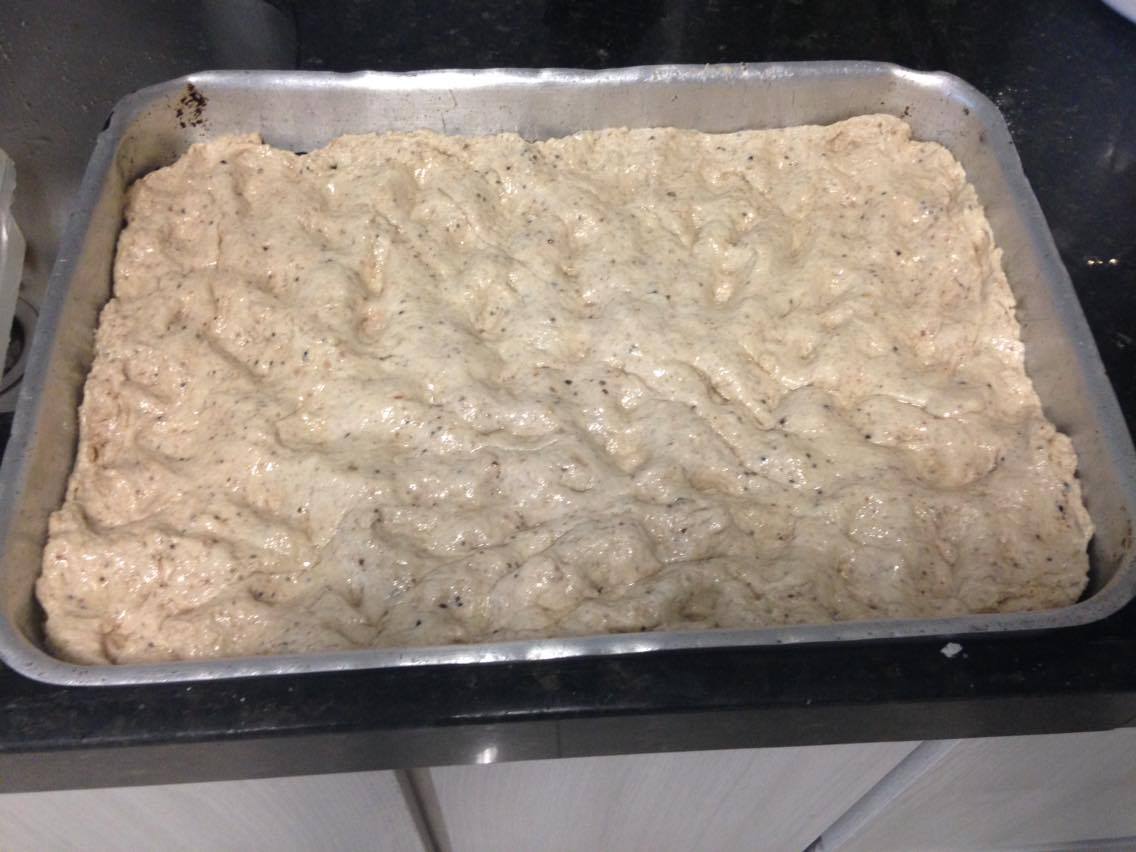 Estou de férias, e me virando com os poucos ingredientes que estão à minha disposição. Mesmo assim, esta focaccia ficou ótima.